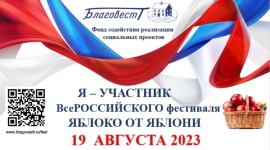 19 августа 2024 года состоится Всероссийский Фестиваль «Яблоко от Яблони», который организуется фондом реализации социальных проектов «Благовест».