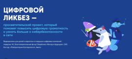 «Цифровой ликбез» – всероссийский просветительский проект в сфере цифровой грамотности, организованный АНО «Цифровая экономика», Минцифры России и Минпросвещения России. Проект включает в себя серию просветительских мультипликационных роликов и методических материалов для педагогов, которые на понятных примерах учат детей и взрослых азам цифровой грамотности и кибербезопасности. Видеоролики от ведущих цифровых компаний-лидеров – Благотворительного фонда Сбербанка «Вклад в будущее», VK, «Авито», «Лаборатории Касперского», «Контур» – представлены на сайте проекта.