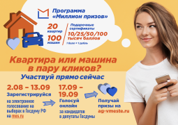 Или шанс выиграть машину и подарочные сертификаты от 10 до 100 тысяч баллов (1 балл = 1 рубль) в рамках программы «Миллион призов».